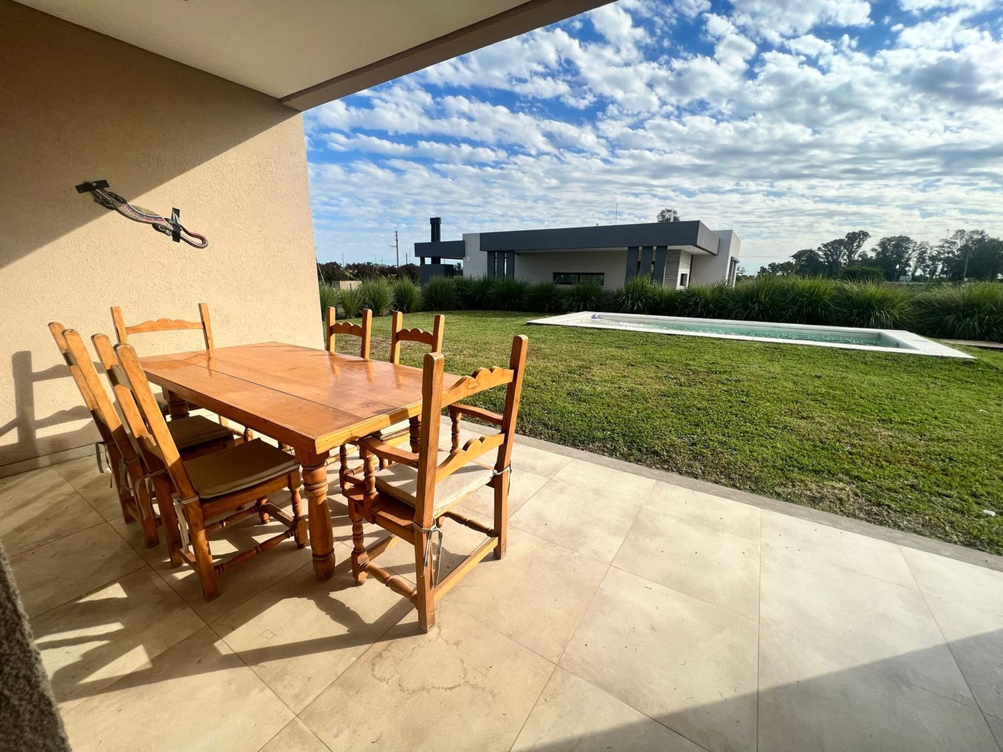 Casa AMUEBLADA en Alquiler en barrio Santo Domingo en Canning, Excelente ubicación sobre lote interno con piscina, 3 dormitorios con el principal en Suite, 2 baños, cocina comedor y quincho con parrilla. Posibilidad de alquiler solo febrero, anual o por 2 años. Contactanos para mas info Barrio uno propiedades S.A.S (CPCMLZ 4497/4436)